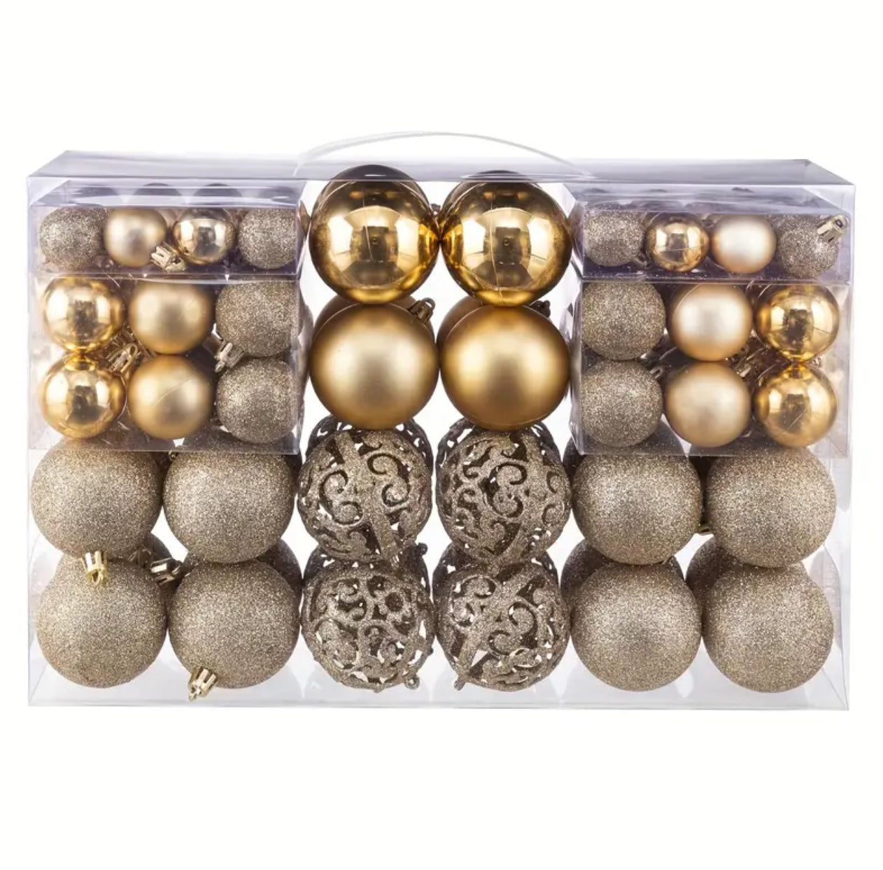 Deck your tree with this set of 100 Christmas Ball Ornaments, perfect for adding festive sparkle and elegance to your holiday decor. With a variety of colors and finishes, these ornaments are lightweight, shatterproof, and easy to hang, making them ideal for trees, wreaths, garlands, and more. Celebrate in style!