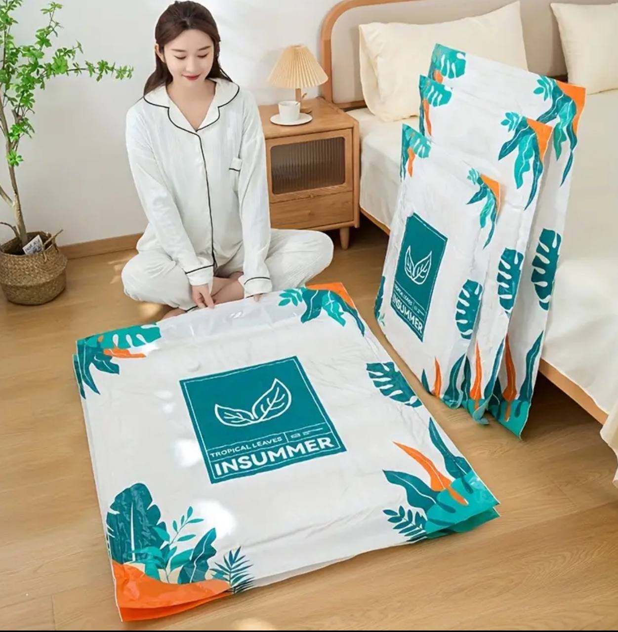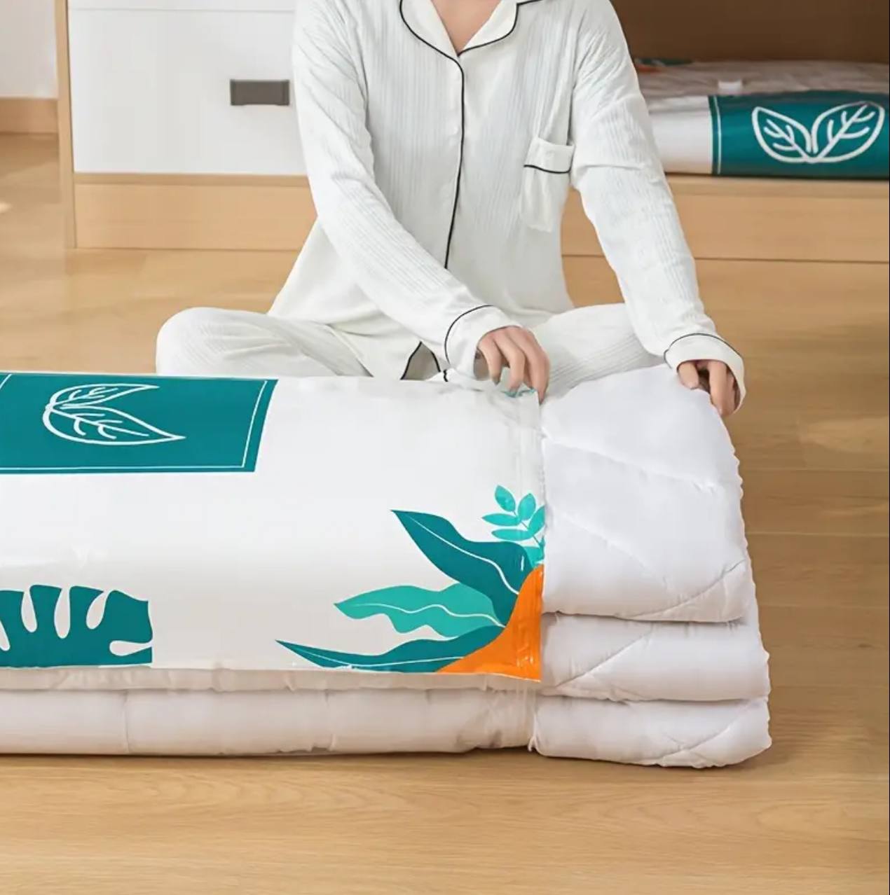 Maximize storage space with this 10-Piece Vacuum Compression Storage Bag Set, including an electric rechargeable pump. Made from durable PA+PE material with 9-wire thickness, it protects against moisture, dust, and insects. Perfect for quilts, coats, and clothes—organized and compact!