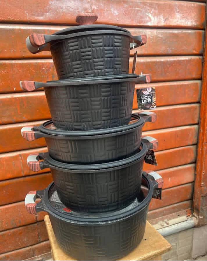 12pcs UCCLIFE Granite Cookware Set – Features a stylish checked print in black and grey. Heavy-duty non-stick pots and pans with lids. Durable, heat-resistant, and perfect for all cooking needs in modern kitchens.