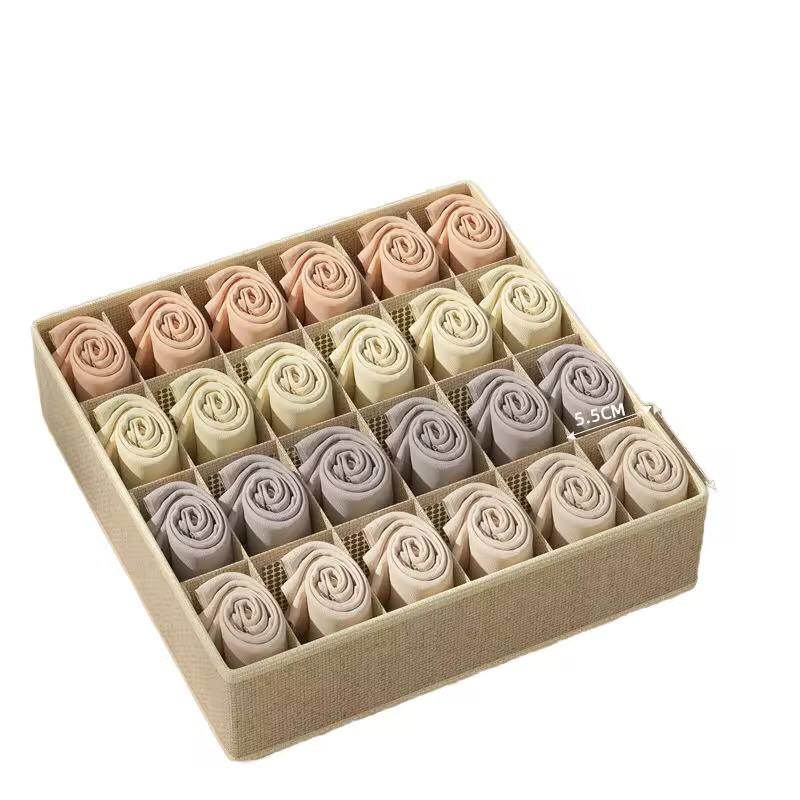 Keep your essentials neatly organized with the 24-grid undergarment organizer. Made of durable non-woven fabric, it’s perfect for storing underwear, socks, and personal items. Its space-saving design allows for easy folding when not in use. Ideal for drawers and closets!