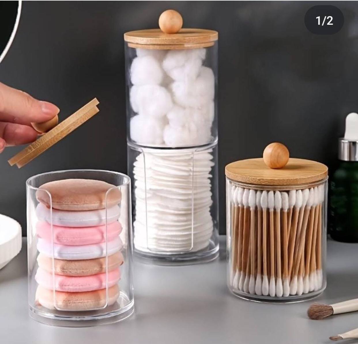 Keep your cotton pads organized with this 2-piece storage jar set. Featuring stylish bamboo lids, these sleek containers offer practical storage while adding a natural touch to your bathroom or vanity—perfect for cotton pads, swabs, and other essentials.