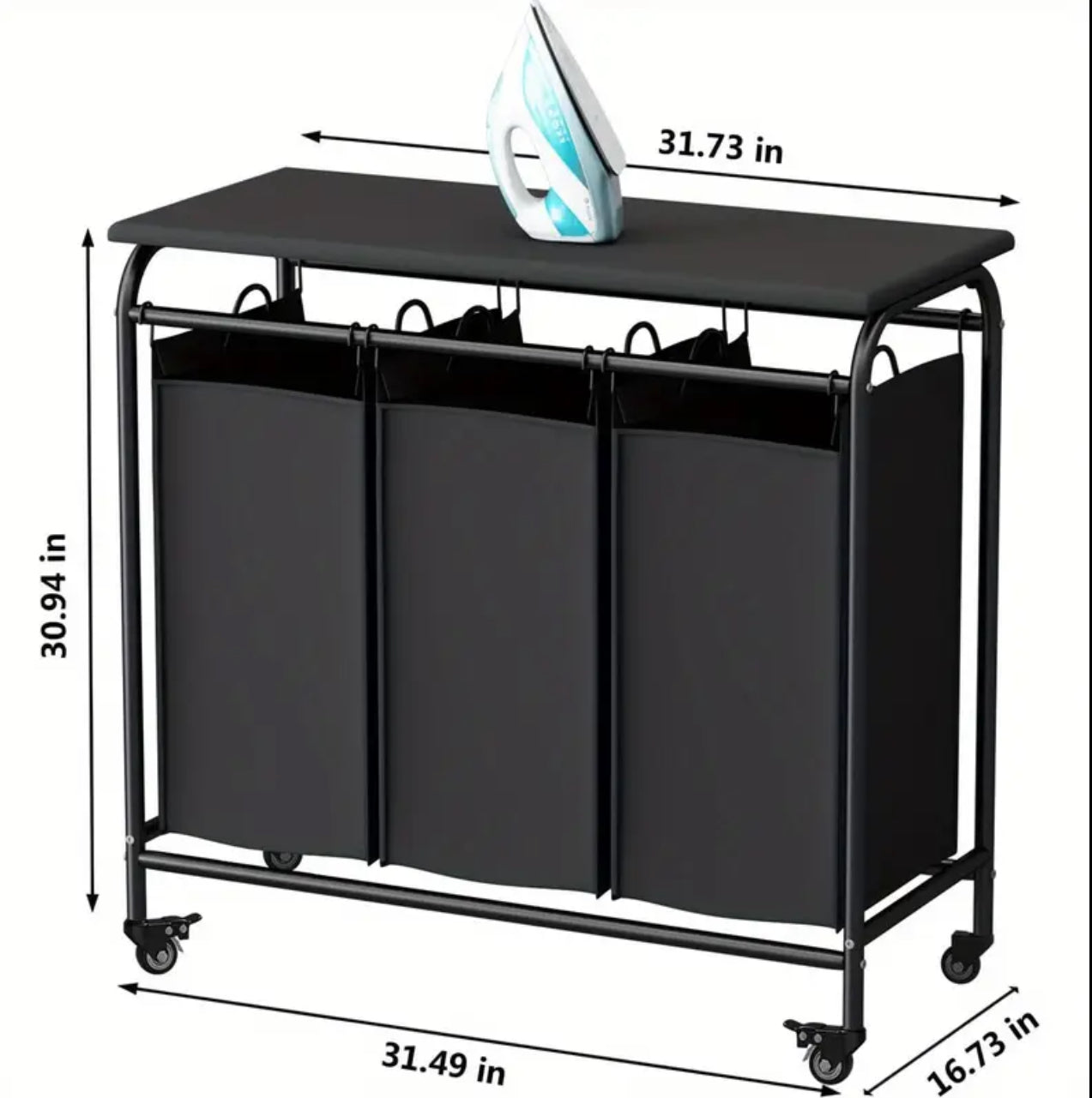 Simplify laundry day with this 3-compartment laundry basket featuring lockable wheels and a built-in ironing board. Sized at 80x79x42cm, it offers organized sorting, mobility, and functionality, making it a must-have for efficient, space-saving laundry management!
