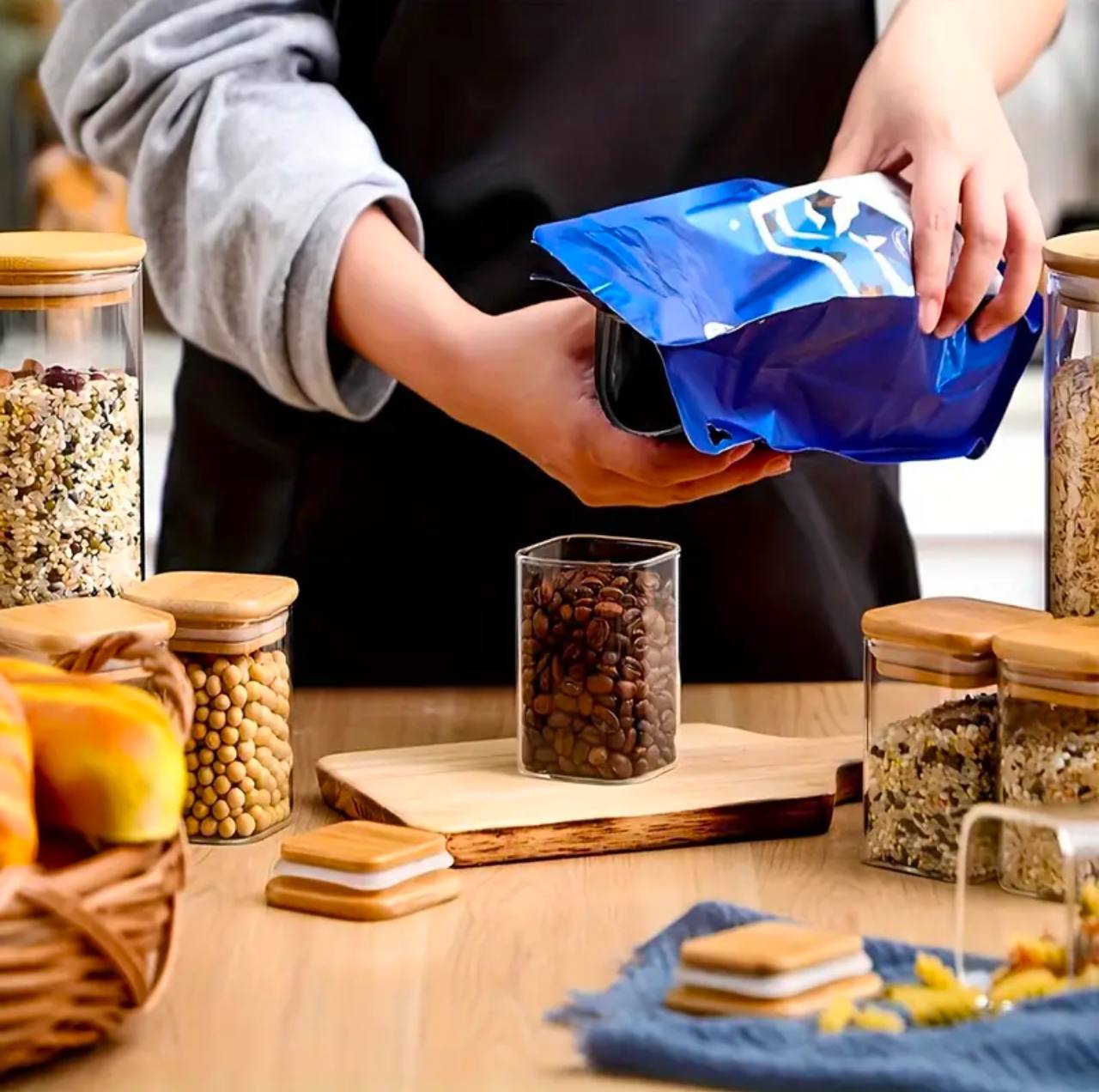 This 3-tier bamboo spice rack includes 12 airtight glass jars with bamboo lids, each holding 200ml. The elegant bamboo rack organizes your spices stylishly, ensuring easy access while adding a natural, sophisticated touch to your kitchen countertop.