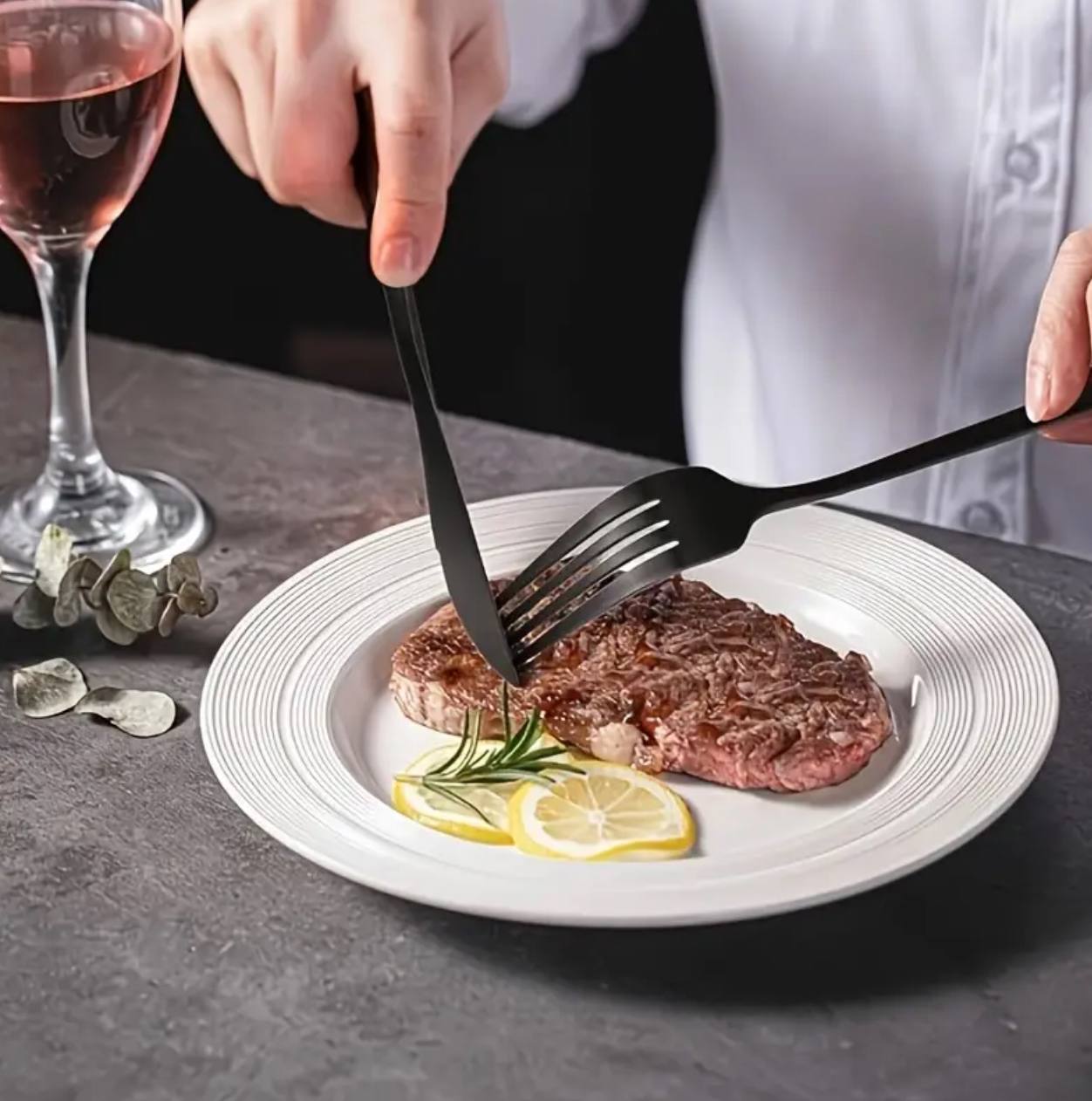 Upgrade your dining experience with this 30-piece black stainless steel cutlery set! Sleek, durable, and rustproof, it includes knives, forks, spoons, and teaspoons. Perfect for everyday use or special occasions, adding sophistication to your table setting effortlessly.