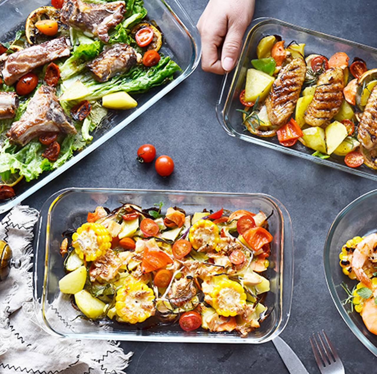 3-piece rectangular glass baking tray set—3L, 2.2L, and 1L. Made from clear, high borosilicate glass. Heat-resistant, durable, and safe for oven, microwave, freezer, and dishwasher. Perfect for baking, serving, and storing.