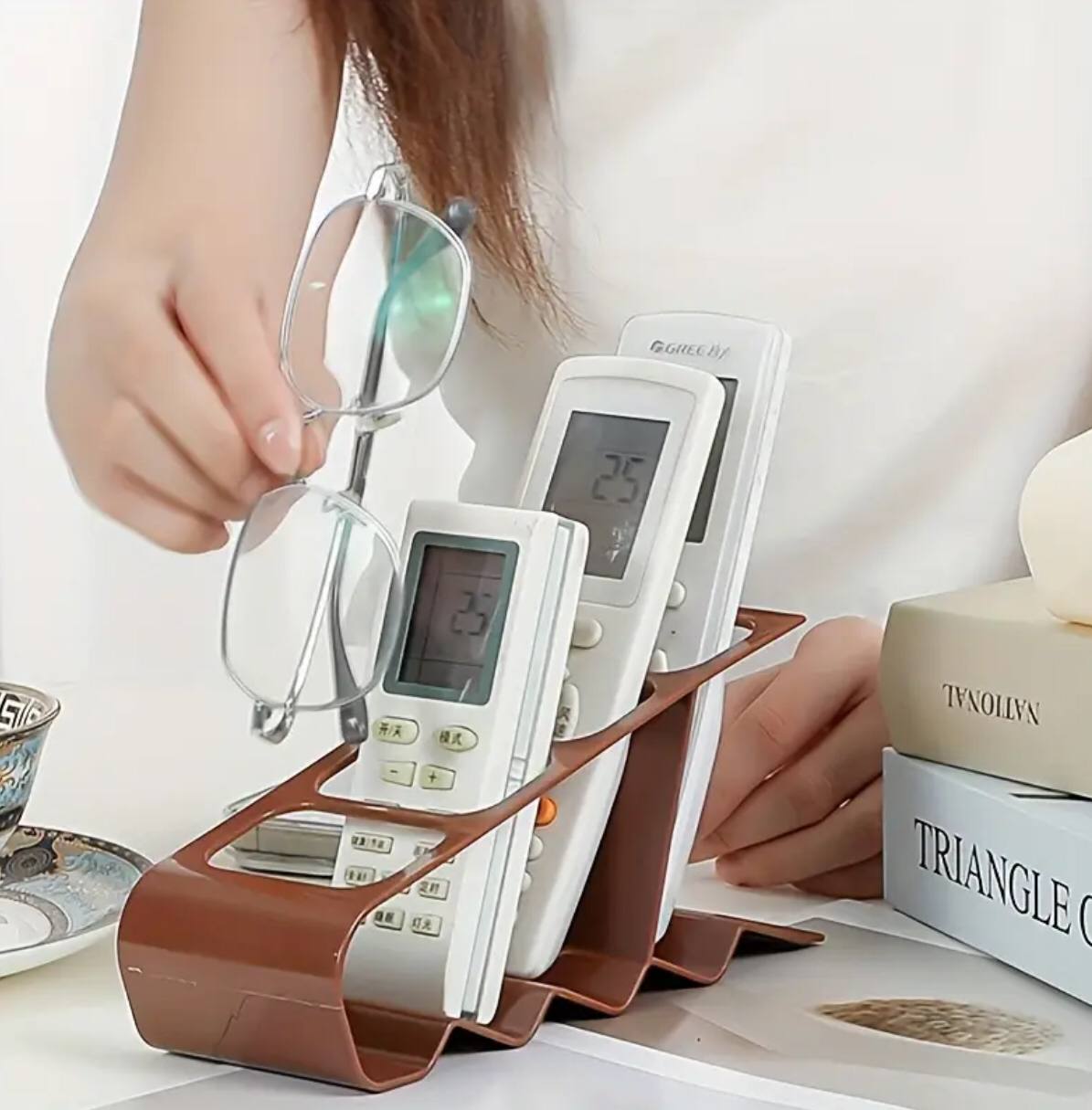 Declutter your space with this 4-Slot Plastic Remote Control Holder! Ideal for remotes, phones, and small home items. Perfect for desktops or living areas, it keeps essentials organized and within reach. Sleek, compact, and a smart home storage solution.