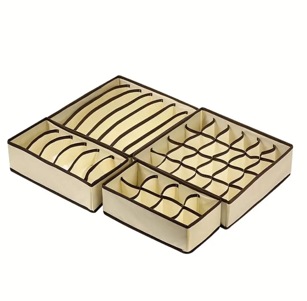 Streamline your storage with this 4-in-1 undergarment organizer in elegant cream. Perfect for bras, panties, socks, and more, it keeps drawers neat and items easy to find. Durable, space-saving, and stylish—your wardrobe's new best friend.