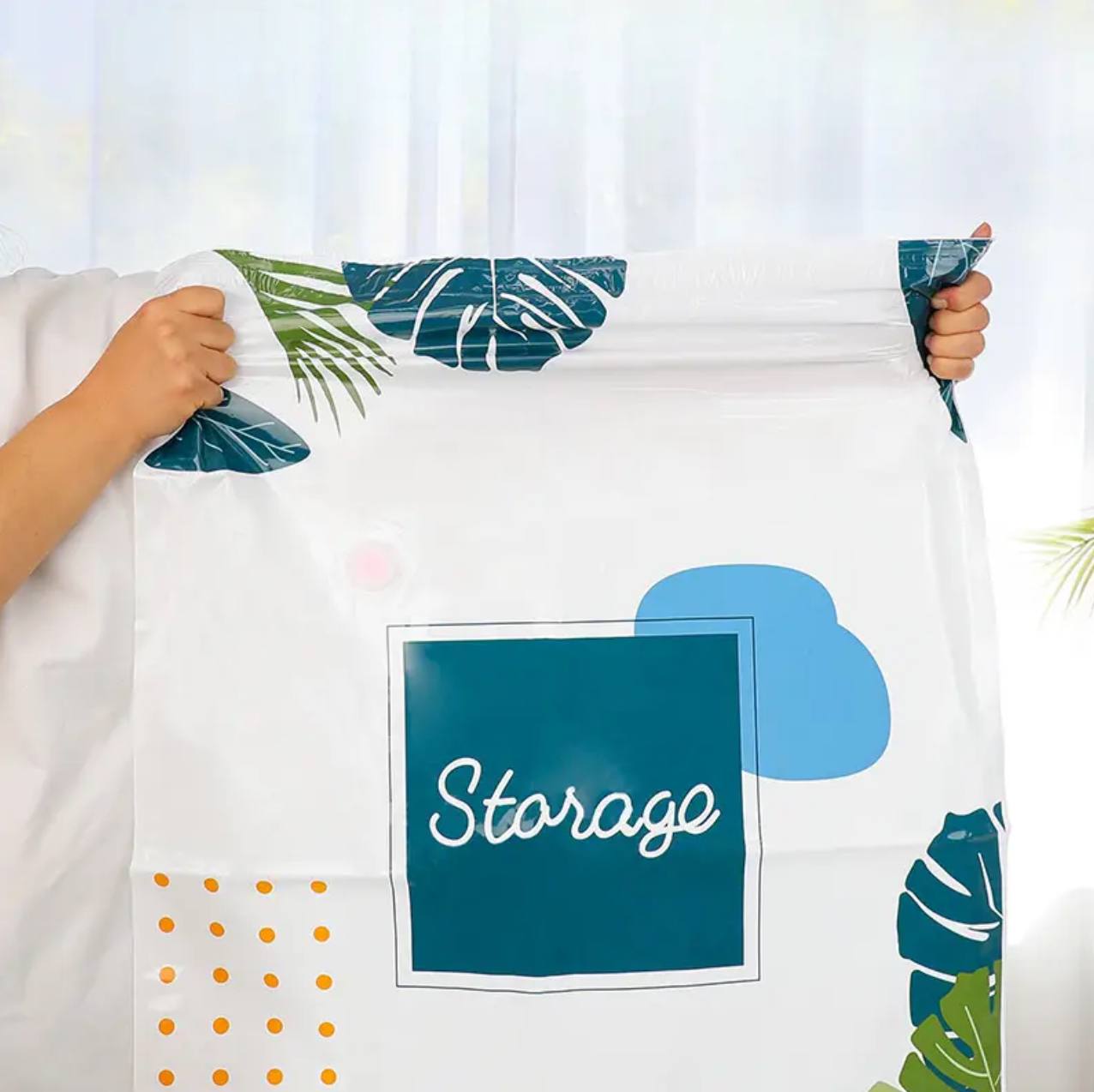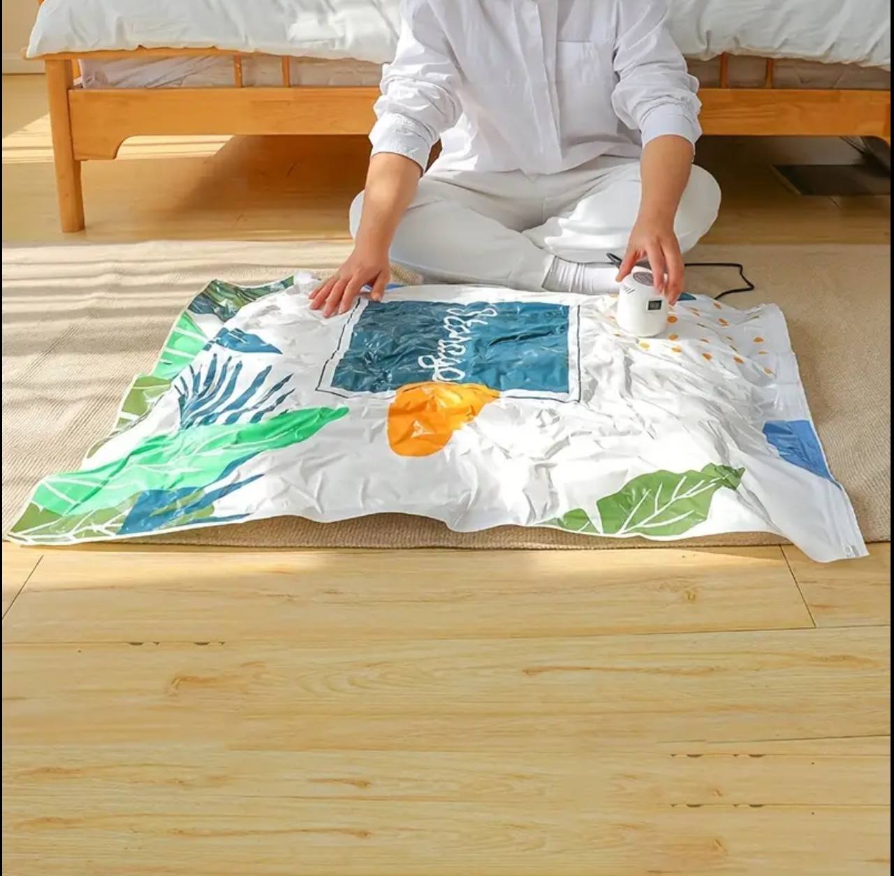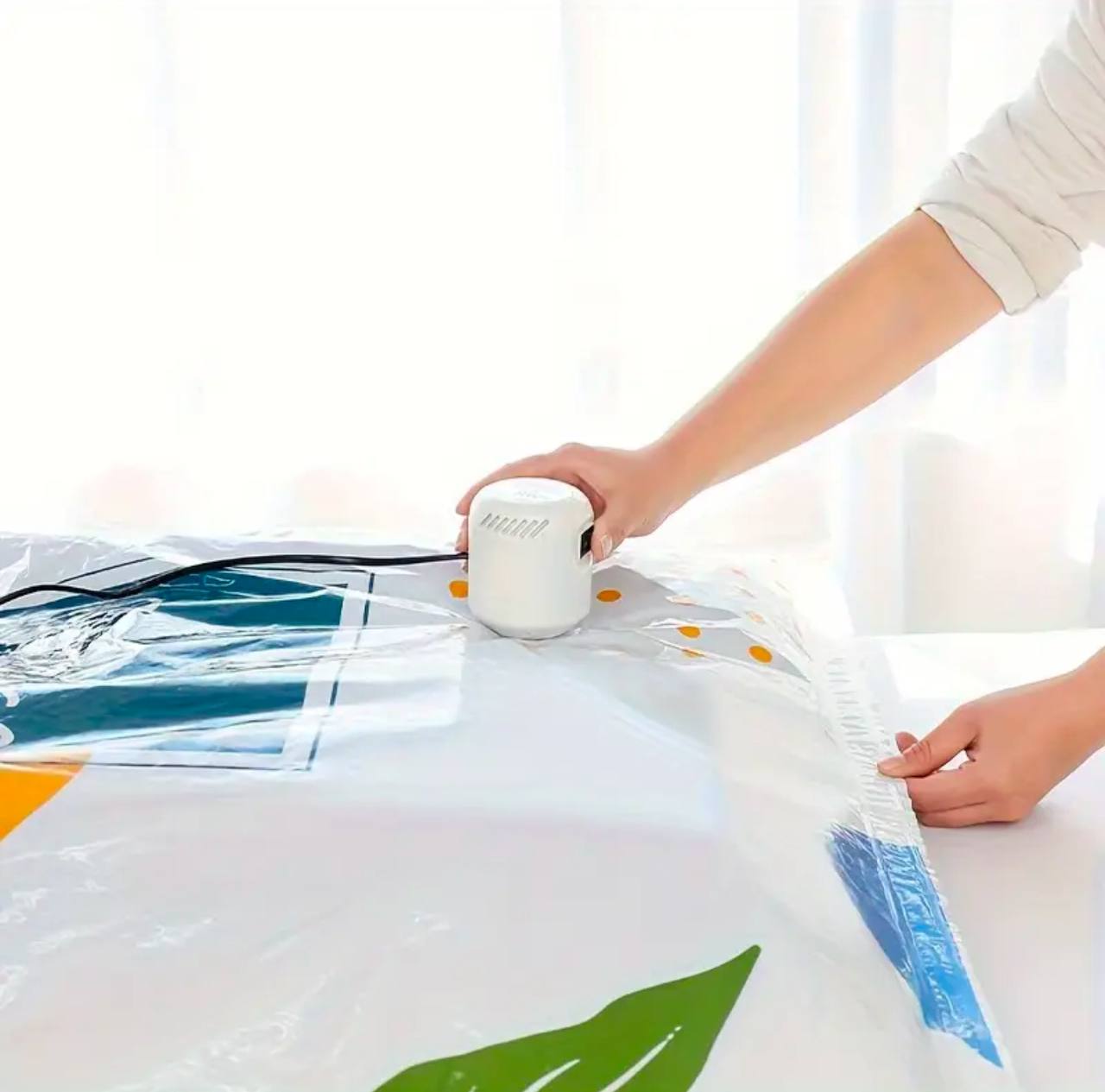 Maximize storage space with this 5-piece Vacuum Compression Storage Bag Set featuring a rechargeable electric pump. Made from durable PA+PE material, it protects against moisture, dust, insects, and moths—perfect for quilts, clothes, and bedsheets. Various sizes included for versatile organization.