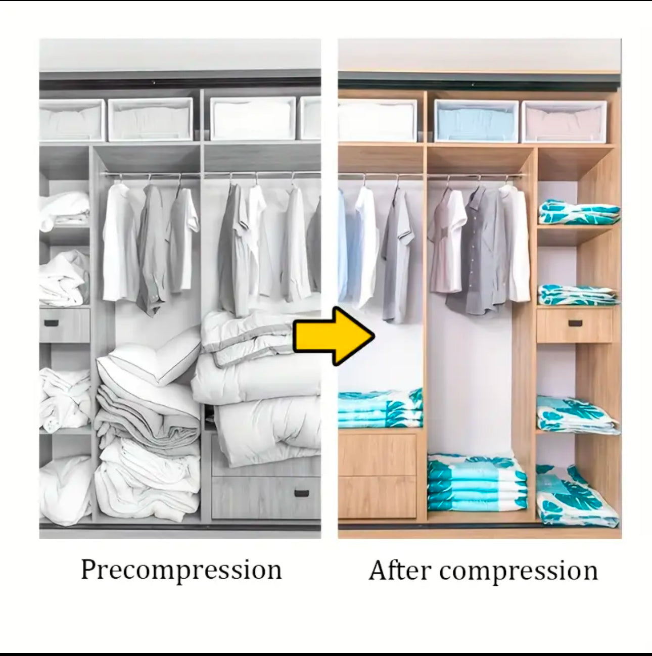 Maximize your storage with our 5-piece Vacuum Compression Storage Bag Set! Made with durable PA+PE material and 9-wire thickness, these bags save space while protecting from moisture, dust, and insects. Includes a rechargeable electric pump for effortless compression. Sizes: Extra-large (100x80cm, holds up to 11kg quilt), Medium (80x60cm, for thin quilts/coats), and more. Perfect for clothes, quilts, and beddings!