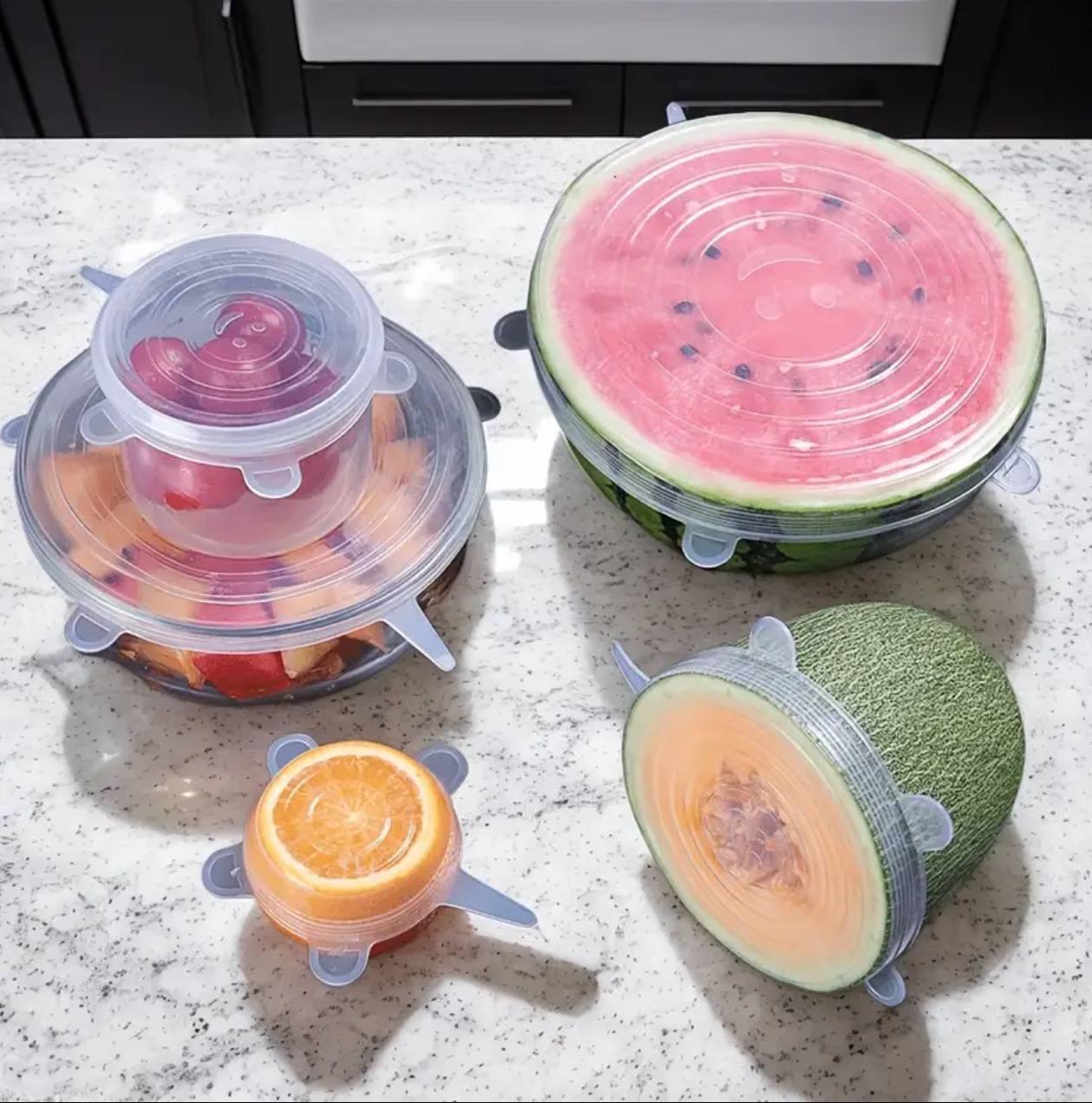 Keep food fresh with our 6 PCS Reusable Silicone Covers. These adaptable, stretchable lids fit cans, dishes, and containers of various sizes. Durable, BPA-free, and easy to clean—perfect for eco-friendly kitchen storage and reducing food waste effortles