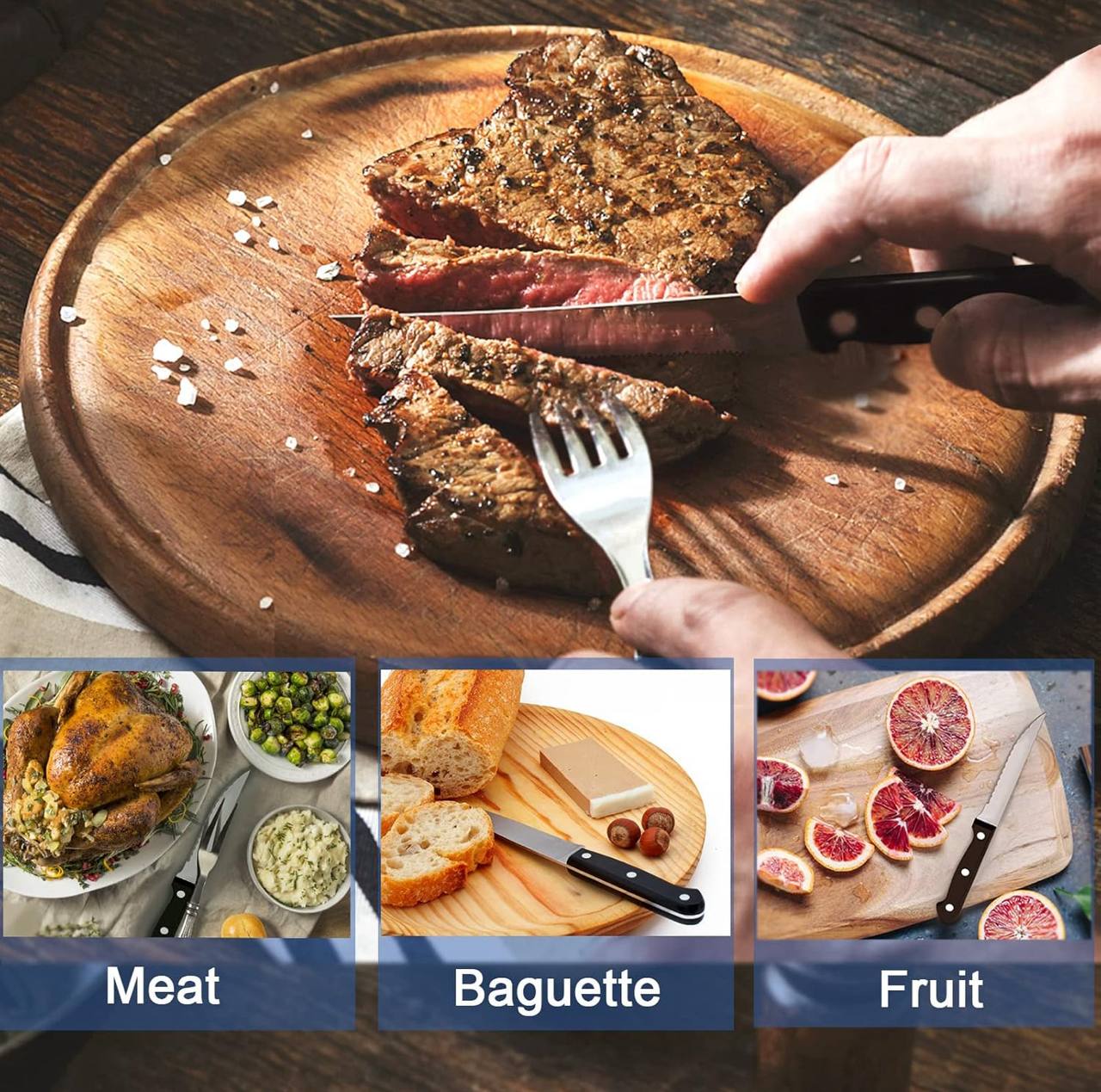 Enjoy precision cutting with this 6-piece stainless steel serrated steak knife set! Perfect for meat, butter spreading, and slicing fruits. Each 22cm knife features a comfortable handle and ultra-sharp edge—ideal for effortless dining and kitchen prep. Sleek, strong, and reliable!