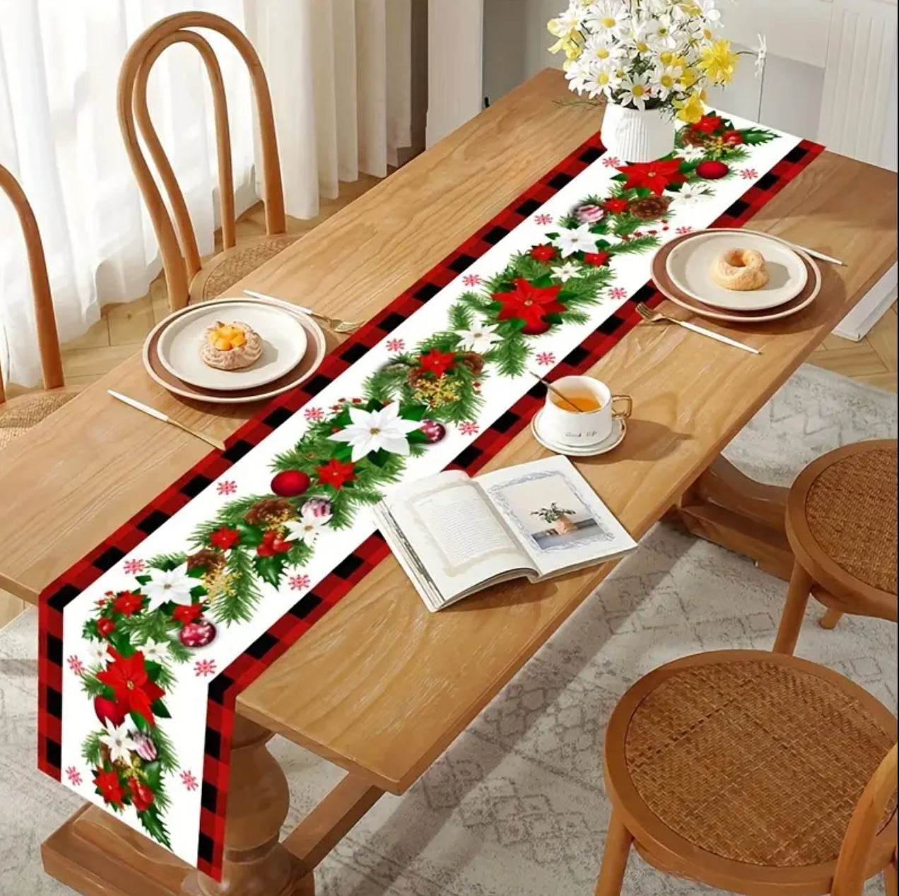 Enhance your holiday dining with our Christmas Table Runner! Featuring a charming 2025 Santa and snowflake design, this polyester tablecloth (180x32cm) adds festive cheer to your home. Perfect for creating a cozy, merry atmosphere for your Christmas celebrations.