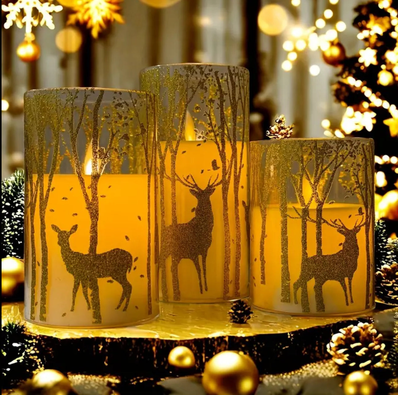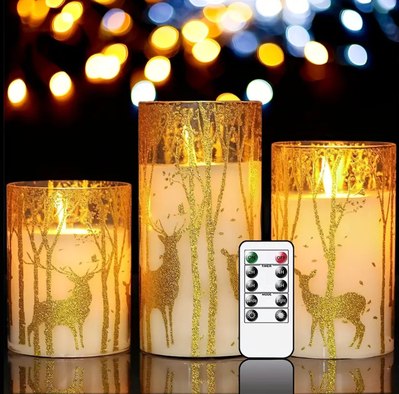 Create a cozy, festive atmosphere with this set of Christmas-themed Dimmable LED Candles. Battery-operated and rechargeable, these candles are perfect for holiday decor. With adjustable brightness via a remote controller, they provide a customizable glow without the worry of odors. The set includes candles in 15cm, 12.5cm, and 10cm sizes, ideal for creating a warm, inviting holiday ambiance.