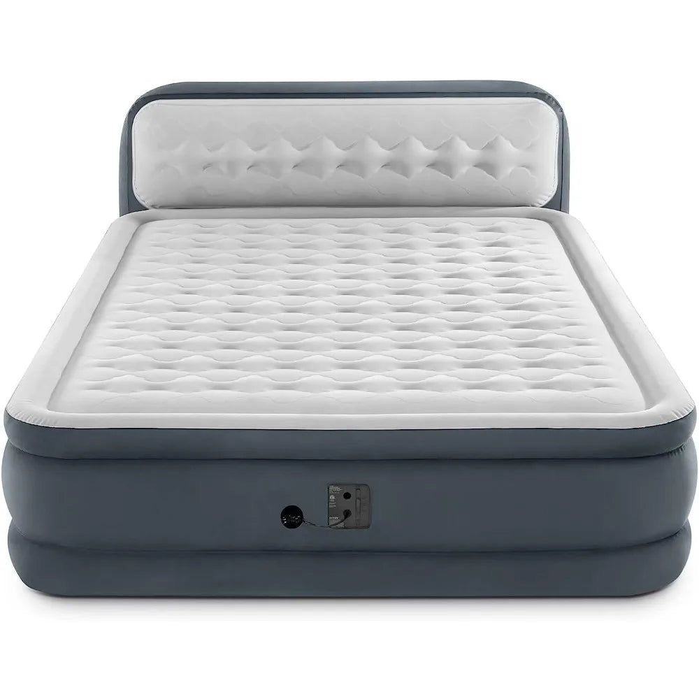 Experience ultimate comfort with the Queen-sized air mattress featuring a plush headboard for support and pillow stability. The built-in electric pump offers easy inflation and deflation, while the 18-inch raised design and Fiber-Tech technology ensure durability, comfort, and easy access.