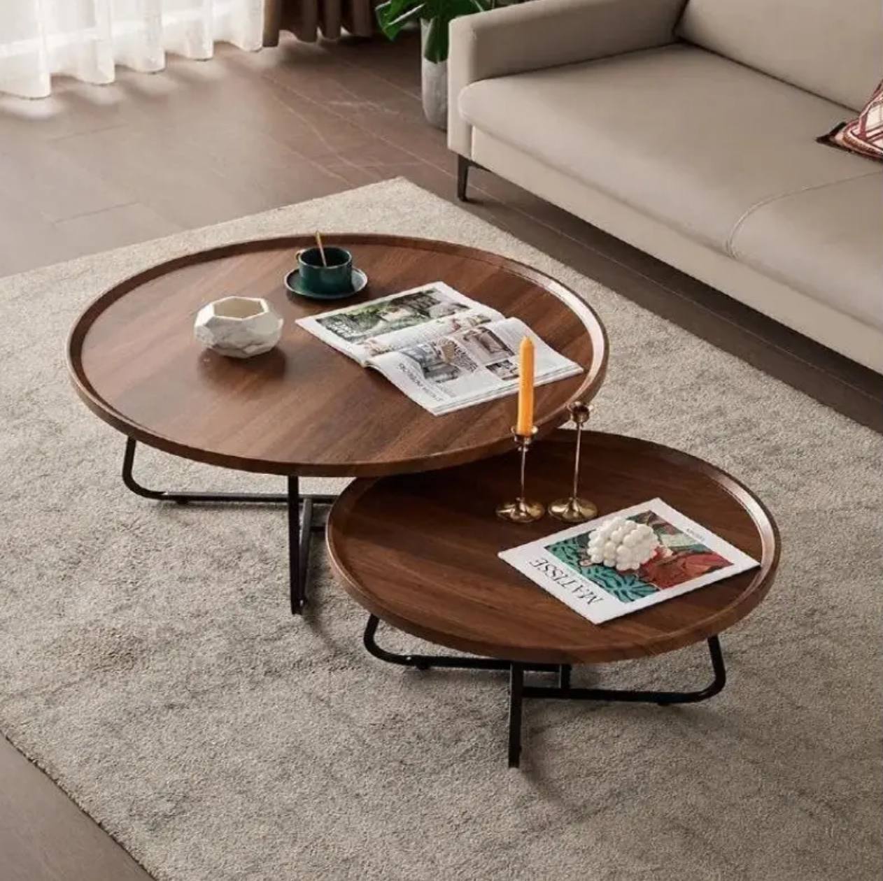 Modern round coffee table set—mid-century design for a stylish touch. Perfect for living rooms, bedrooms, balconies, or courtyards. Set of 2 wooden end tables adds elegance and functionality to any space. Durable, compact, and versatile for everyday use.