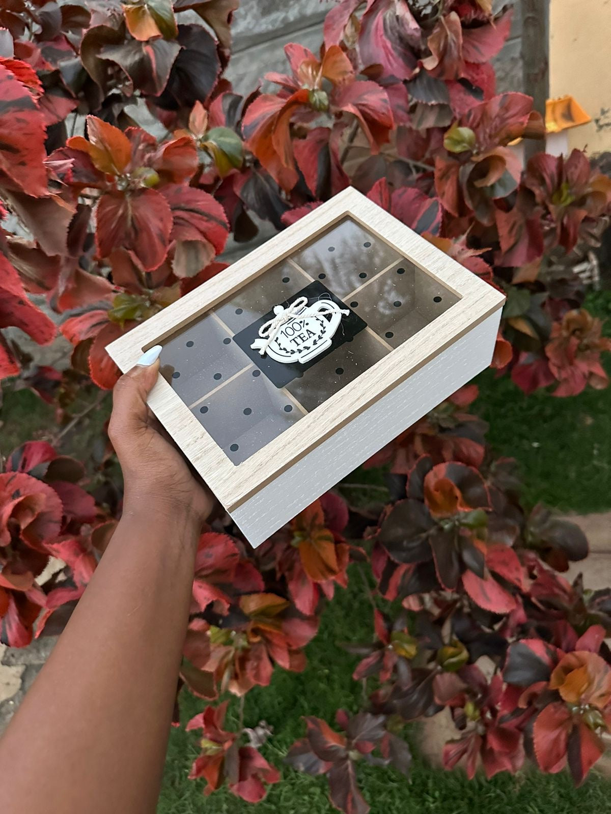 Elevate your tea storage with this new wooden tea bag holder. Crafted from high-quality wood with a transparent glass top, it offers easy visibility and elegant organization. A perfect blend of functionality and style for your kitchen or tea station.